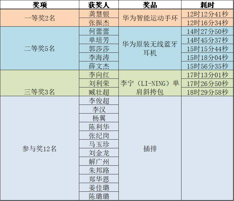 经过为期150天的坚持,共有111名同事参加活动,其中22名完成本次活动目标。为大家的坚持及毅力点赞,我们也为每一位完成目标赛的同事准备了一份礼品。领取名单如下: