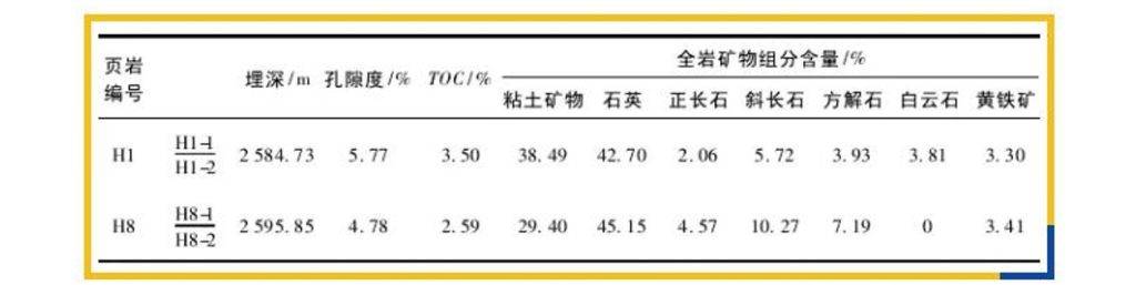 实验样品采自涪陵地区志流系龙马溪组页岩,样品物性、TOC含量及矿物含量见下表。