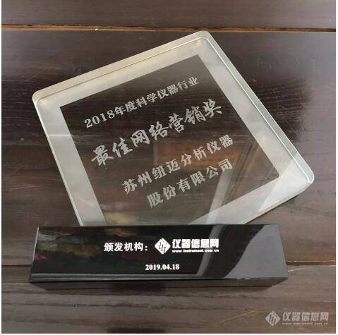 纽迈分析凭借过去一年丰富的市场活动,以及“15周年庆”回馈和宣传的鳞次栉比,极大提高了纽迈在整个行业的口碑以及品牌认知指数。在本次的仪器及检测风云榜颁奖盛典,荣获“最佳网络营销奖” ,这不仅是对纽迈分析在品牌宣传方面取得非凡成绩的肯定,更加激励纽迈分析在未来追求产品更卓越、服务更优质的道路上继续前行。