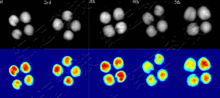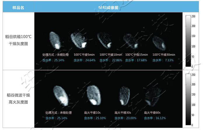 结合T2图谱与MRI成像,核磁共振可以直观的看到种子中的油水分布。