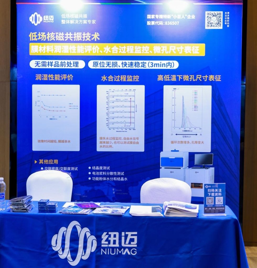 在论坛现场,纽迈分析的展位吸引了众多参会者驻足。行业专家、企业研发人员纷纷前来咨询交流,对低场核磁共振技术在膜材料领域的应用表现出浓厚兴趣。许多参观者在了解到该技术的优势后,当场与纽迈分析的技术团队展开深入探讨,就如何将低场核磁共振技术应用于自身的研发和生产项目中进行了详细沟通。