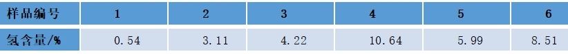 对不同煤矸石样品,使用纽迈低场核磁共振设备进行氢含量的测试,将不同样品的氢信号质量归一化后带入标线计算,得到不同煤矸石的氢含量测试结果,其测试结果如下: